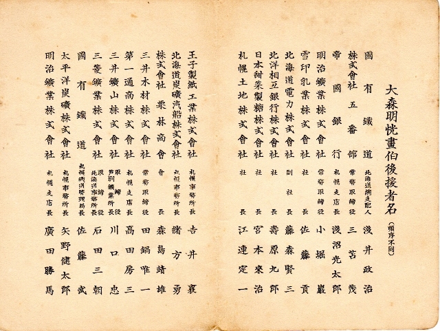 昭和27年(1952年), 大森明恍の北海道滞在にあたっては, 北海道の経済界の方々に多大なご支援をいただいたようです.